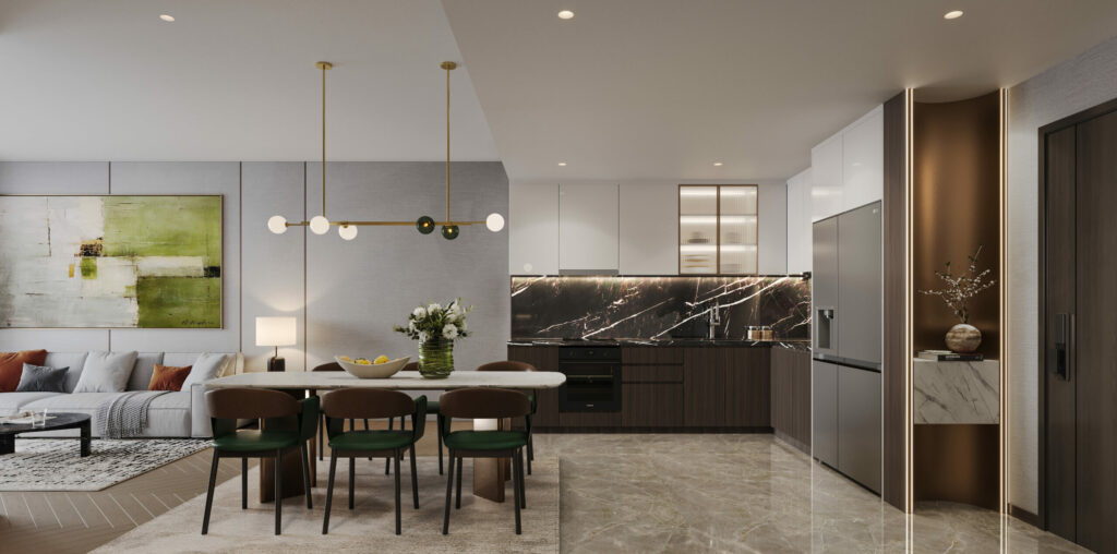 Dòng này gây ấn tượng với thiết kế bếp và khách thông nhau. Yếu tố kể trên giúp không gian sống như được mở rộng. Đồng thời bạn còn thêm hài lòng vì hệ thống phòng ngủ, phòng khách sắp xếp khoa học.